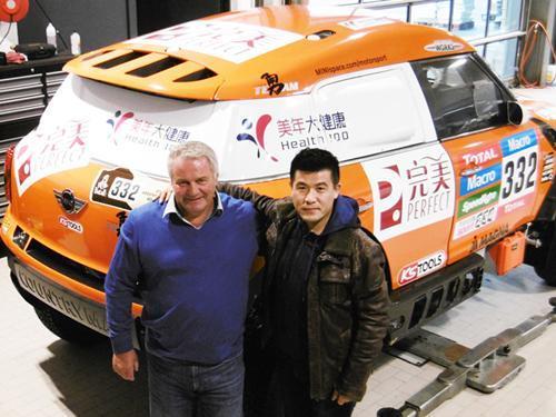 圖為代表“完美中國·美年大健康·勇之隊”出征2015達喀爾拉力賽的著名車手周勇與金牌領航員安德烈亞斯·舒爾茨(Andreas Schulz)
