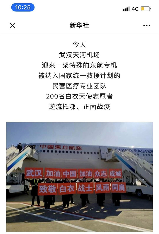 郭美玲董事長率200美年醫(yī)護(hù)精銳專機(jī)增援武漢