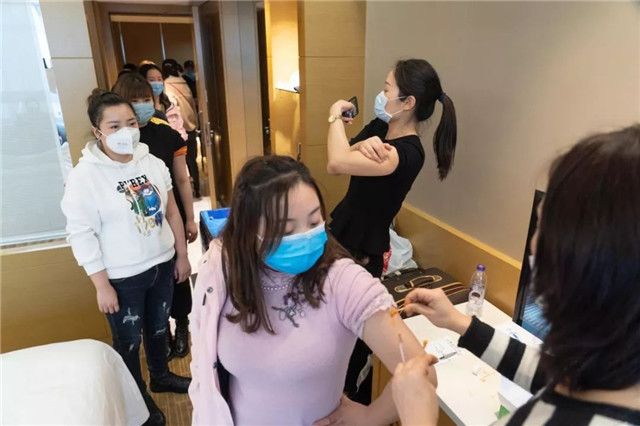 出發(fā)前,美年健康援鄂醫(yī)療隊成員接受胸腺肽疫苗注射