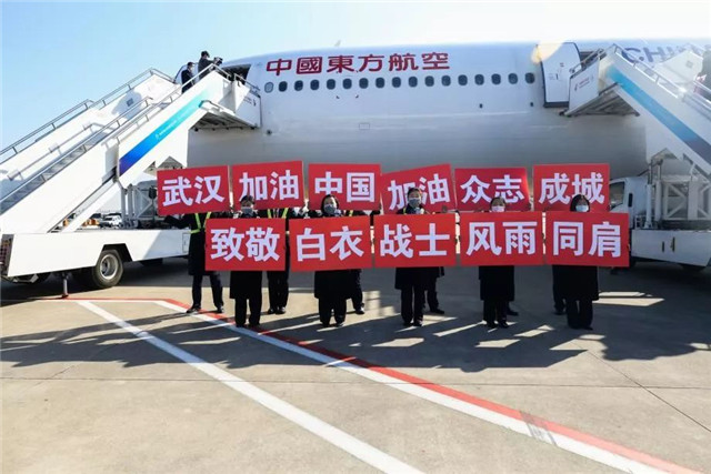 東航機(jī)組成員向美年援鄂醫(yī)療隊致敬