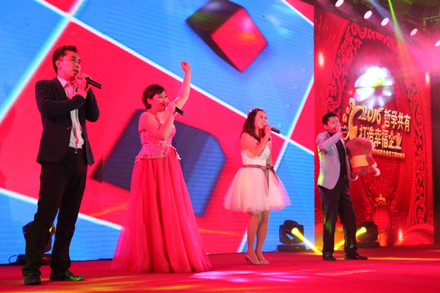 Later, the president Zhao Qi made the 2015 annual work summary and introduced the group’s framework and the achievements of the performance of each project in 2015 and thought that the completion of the goal is attributed to the steady growth of big projects and the clear target, coordinated team and excellent service. Meanwhile, he also indicated that there were three bottlenecks in the development, respectively, development ideas, operating mode and talent training. Moreover, he also put forward to accelerate the transformation and adjustment of market and products and strengthens the efforts to cultivate the wolf consciousness of the team. The president Zhao Qi also arranged the work in 2016 and stressed that the completion of performance must achieve: step-by-step implementation, strict check and evaluation, responsible for each level, opening up the source and reducing the expenditure and continuous learning. To be specific, the group would further generalize “Amoeba” business model, perfect the company’s management system and talent training system as well as carrying out business operation philosophy.