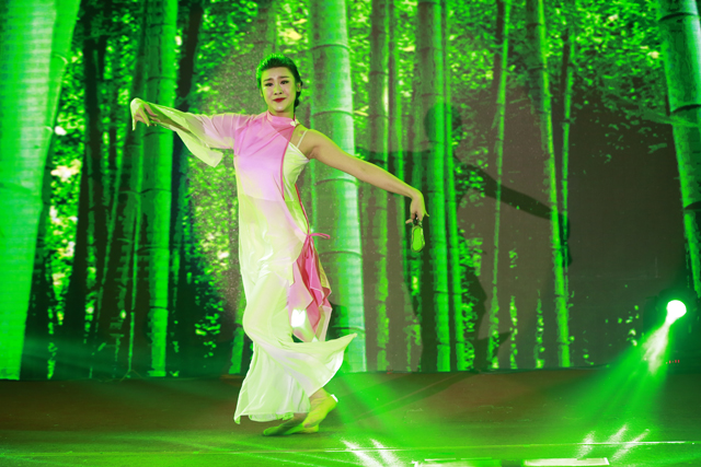 The colleague from group office performed solo dance Rolling up a Bead Curtain.