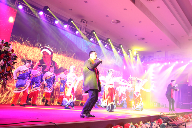 The colleagues from Shandong company performed a chorus Ode to the Motherland.